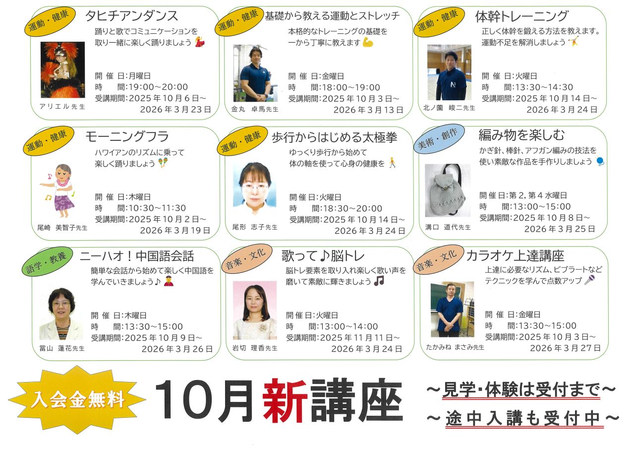 ※現在、未開講の講座もございます。まずはお問合せ下さい。