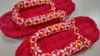 全く作ったことないのに、2時間で一足完成するのかしら・・?と不安でしたが、参加してみるととても楽しくて、そして一足完成しました!お店のものよりもしっかりした作りで、履いているだけでお部屋の掃除もでき(!?)丸洗いもできるので、いつも気持ちよく履いています。